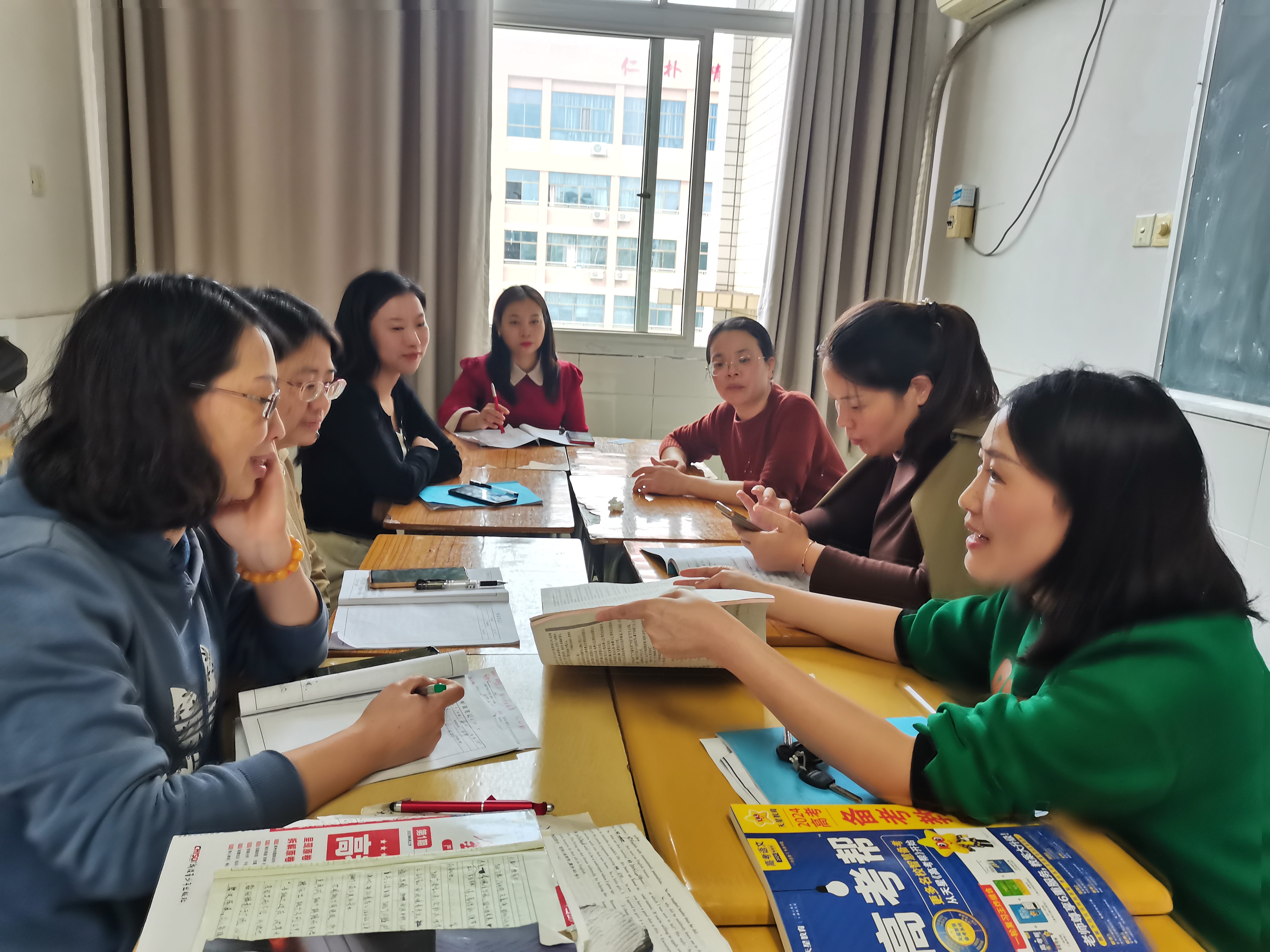 语文教研组老师正在对青年教师比武课进行评课