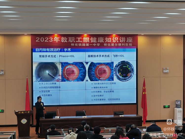 活动第一天,怀化爱尔眼科医院屈光中心副主任医师柯红为老师们讲解眼健康科普知识。在致知楼会议室,柯医生为老师们普及了白内障、干眼症、屈光不正等眼科疾病的相关知识,解答大家关于眼部日常保健的疑问,引导大家关注视力健康,做到眼科疾病早发现早治疗。